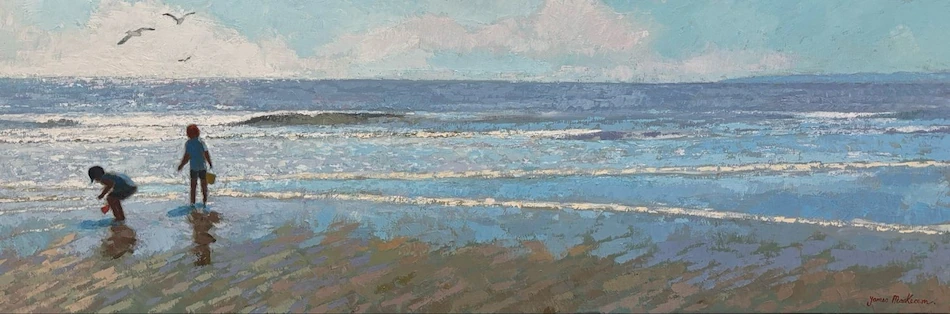 Magie de l’eau et des oiseaux, découverte de coquillages nacrés, l’émerveillement et les rires lorsque les vagues recouvrent les pieds des enfants.